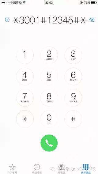 1.打开拨号键盘,输入*3001#12345#*,然后按下呼叫按钮。这时就会进入到iOS内置应用Field Test界面。注意左上角!原来的圆点已经变成数字了有木有!(这只是暂时的)