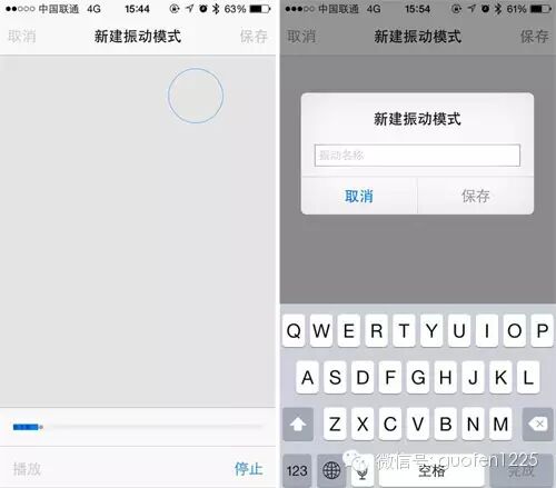 发布于2015年7月8日 由guofen如何设置自定义震动模式 如果你也受够了iPhone默认的那种单调的震动模式,那么不妨试试下面这一招——自定义震动。只需要简单几步,就能玩出各式花样震动,赶快来试试吧: (1)打开“设置” (2)点击“声音” (3)进入“电话铃声” (4)选择“震动” (5)点击“新建震动模式” (6)最后一步,就是根据自己喜欢的节奏点触屏幕了,点触的同时就是在编辑震动模式了,完成后点击“存储”即可。