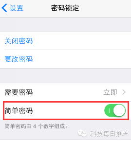 我:你先听我说完,你打开设置-密码(5s以后机型是Touch ID 和密码),关闭“简单密码”;