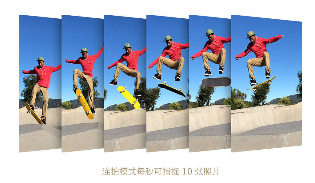 (图片来源:Apple 官方)   5.一直按住快门可以连拍。iPhone 5s 继续逆天,每秒10张。在抓拍的时候非常有用!!!