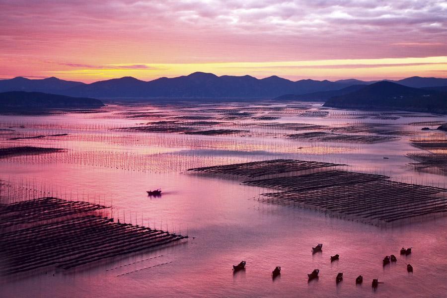 (作者:Misko Kordict) 第五种是三分法构图,可以横着也可竖着。特别注意,地平线不要歪!           (《紫气升腾》 作者:邱军 拍摄地:福建 )
