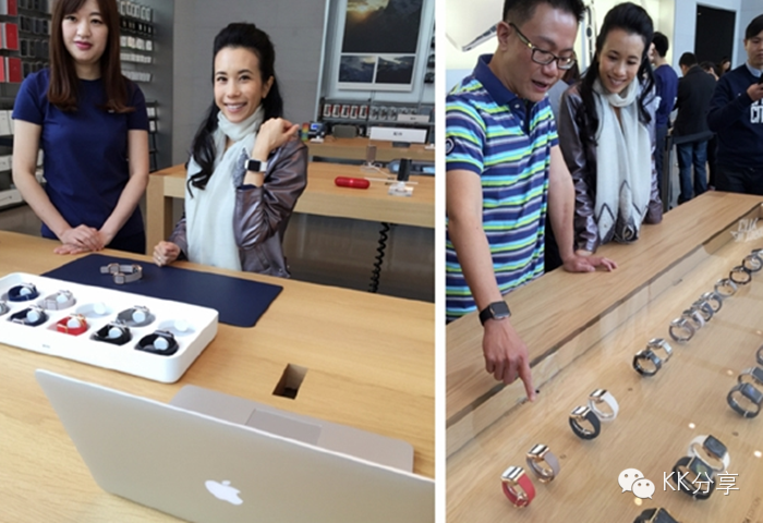 总结:总体体验还不错,手表带上去挺舒服没有生硬冰冷的感觉,不锈钢的容易沾上指纹,运动款估计买的人最多。值得称赞的是苹果店都是一对一服务. 每个人预约好后都有半个小时的试戴时间 全程都是一对一服务,工作人员帮你佩戴设置讲解和推荐,看来为了卖手表苹果也是蛮拼的。