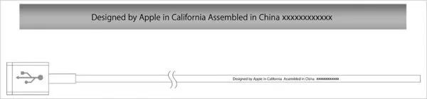 ▲Lightning连接线印有「Designed by Apple in California Assembled in China」