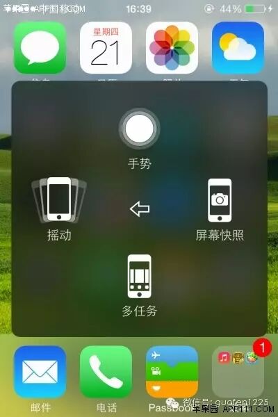 这种状态下就不能用电源键+Home键截屏啦,今儿小编给大家推荐另外一种截屏法...利用手势,也就是调出屏幕上的小圆点。