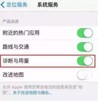 如何关闭:设置-隐私-定位服务-系统服务-诊断与用量 - 关闭
