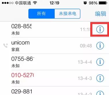 如果有个家伙特烦人,总给你打骚扰你可以这么做:打开电话列表,然后点击右边感叹号,进入后点击“阻止此号码来电”将其加入黑名单。