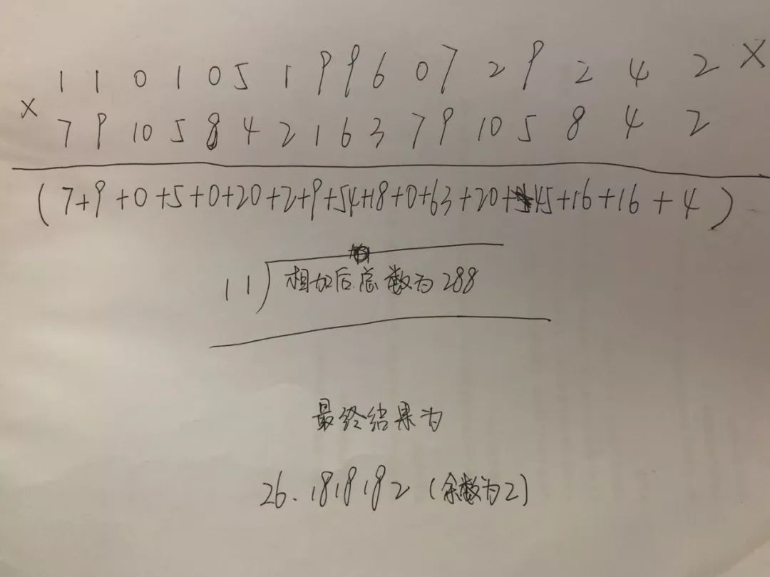 再用这个总和,也就是288除以11,最终的结果为26.1818182。