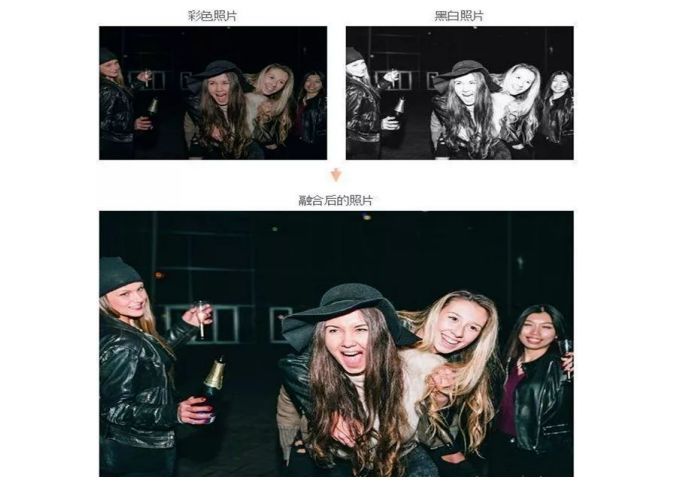 1、彩色+黑白双摄像头 (同像素黑白双摄像头)