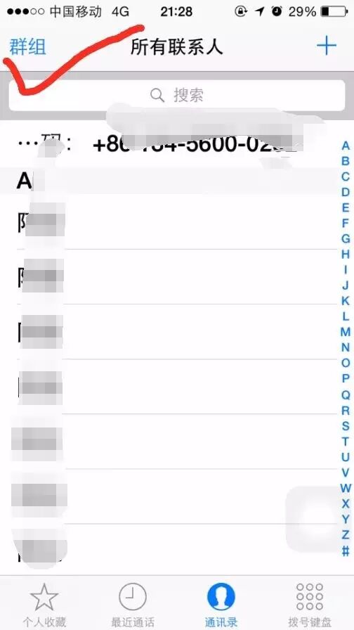 首先依次打开 电话 - 通讯录 - 群组