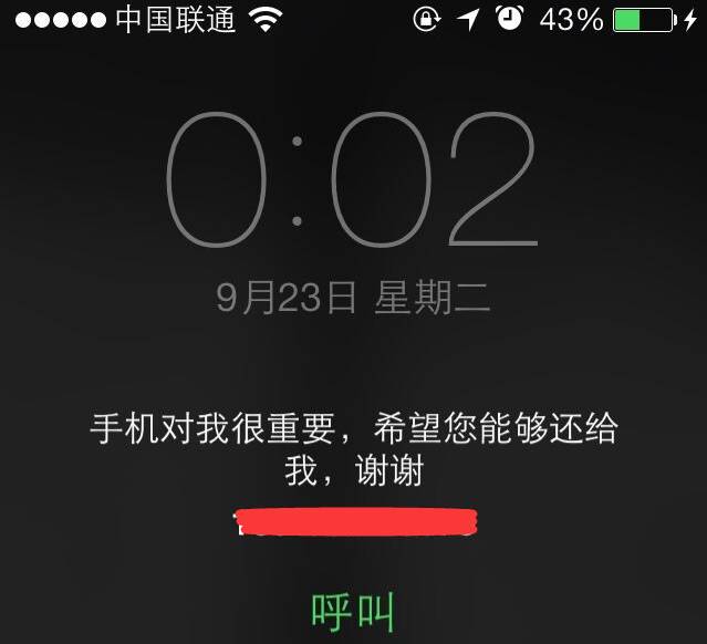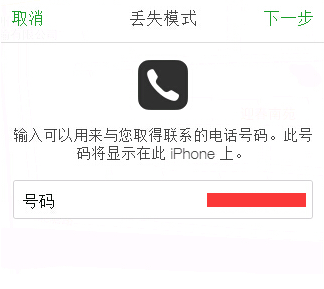 当你丢失的手机再次开机时,系统会自动抹掉所有数据并在主屏幕显示你的留言,如果不输入正确的Appleid和密码,这机子就没法用了...我们说的丢失模式正式如此!