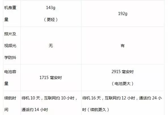 续航时间:两款iPhone在这一方面存在30-40%左右的差异,但是经过一天的通话、上网、视频和音乐使用之后,两者基本上都需要每天一充,所以在这一点体验上,我们没有必要过于纠结。如果你不得不在非可充电环境下使用10小时以上,建议选择6s Plus,否则选择6s。