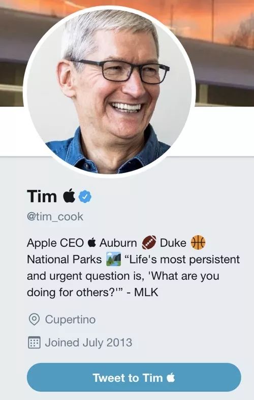 库克把自己的推特用户名改成了: