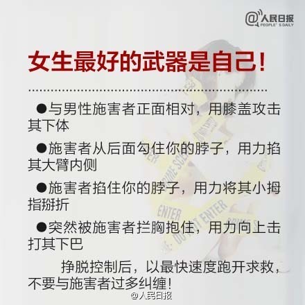 这里给大家分享几个女孩子出门防身必读的技巧,希望每个女孩子,出门都平平安安。