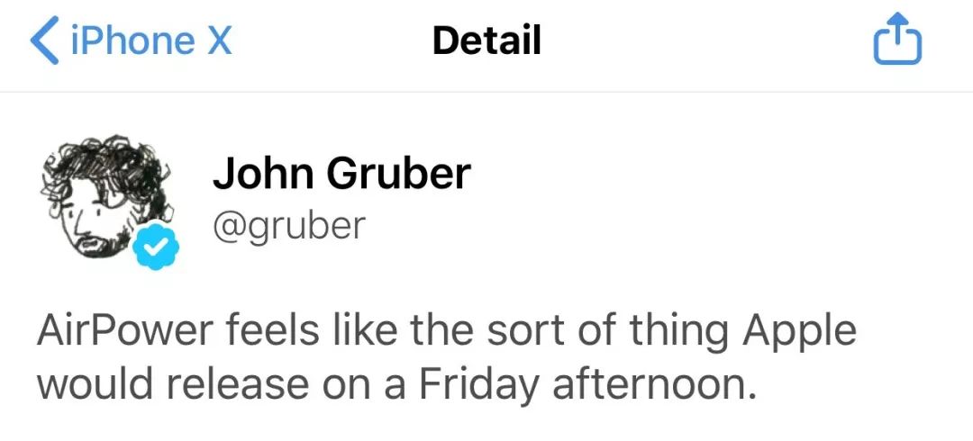 不过哎妹今天还捕获了一个关于苹果新品的内部消息,说「感觉苹果会在某个周五下午发布 AirPower 」。