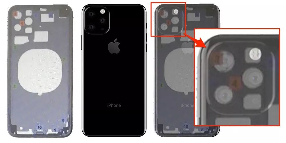 从图上看,新 iPhone 就是“浴霸”摄像头,跟华为 Mate 20系列后置摄像头相似。