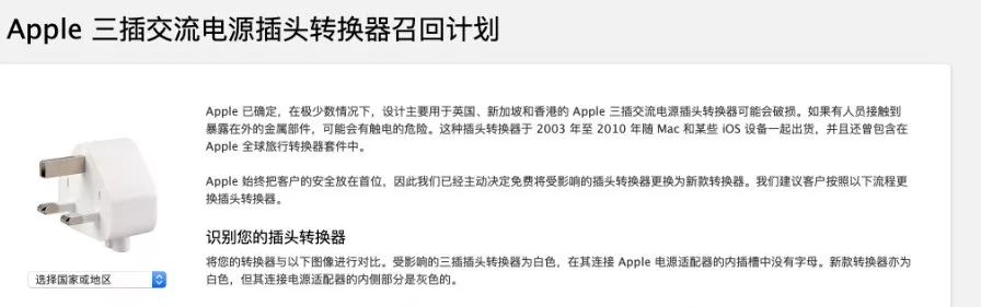 此次召回的产品是为中国香港、新加坡和英国市场设计的墙壁式插头适配器,旧的适配器可能会使用户遭受到电击。